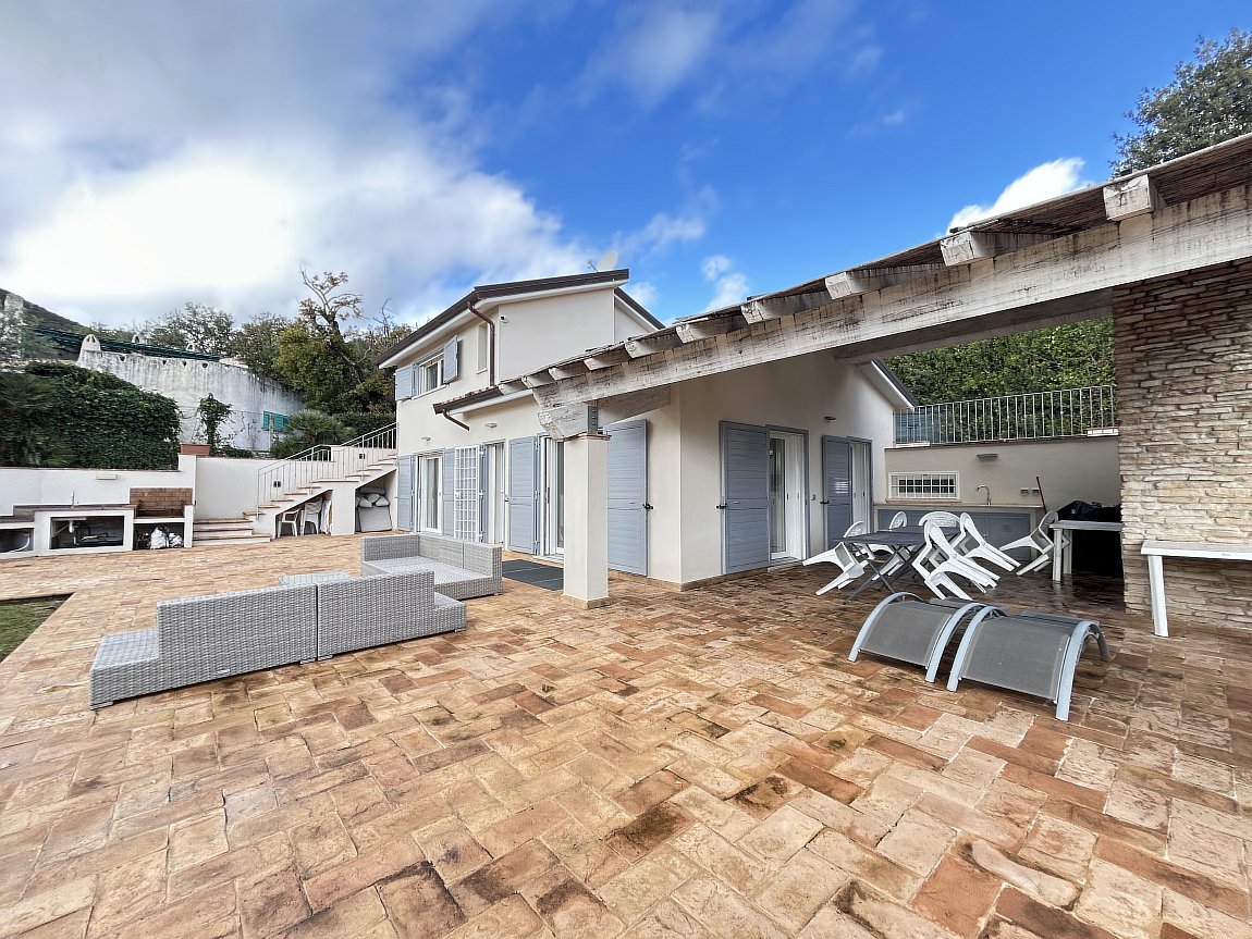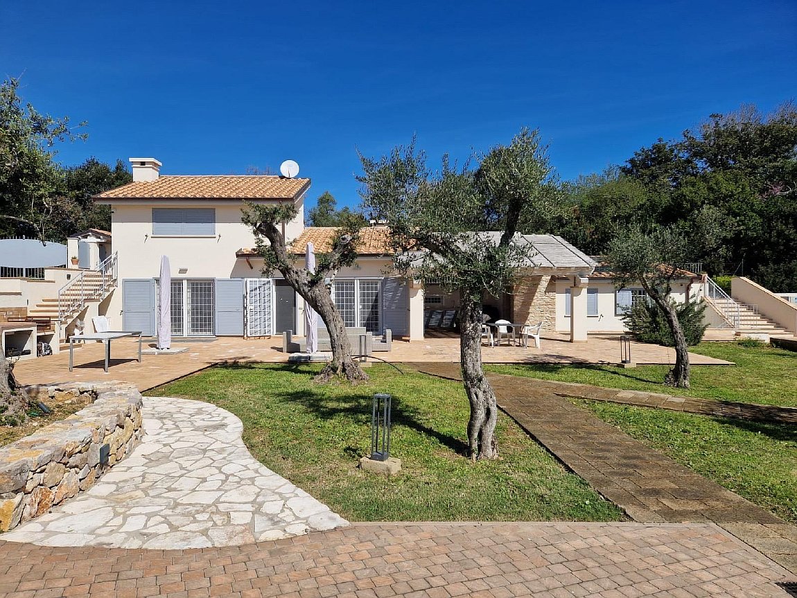 L’Agenzia Immobiliare Domus propone in vendita nel punto più esclusivo di San Felice Circeo “Via Marco Emilio Lepido” a soli 450 metri dal mare e 850 metri dal centro, Prestigiosa Villa Unifamiliare con splendida vista mare di nuova costruzione unica nel suo genere. Il contesto inoltre è silenziosissimo e lontano da strade ad intensa viabilità. L’immobile é composto al piano terra da ingresso, soggiorno, studio, ampia cucina a vista, zona pranzo il tutto con uscita sul giardino, 2 camere e servizi. Piano Primo con accesso da una comoda scala troviamo una grande camera matrimoniale con vista mare e bagno con doccia all’interno.Piano seminterrato con n° 3 cantine e locale tecnico. La proprietà è valorizzata da un meraviglioso e grande giardino pianeggiante curato di circa 2500 mq con vista mare e ulivi secolari dotato di docce esterne, ampio angolo barbecue con forno oltre ad un pergolato esterno dove poter passare piacevoli pranzi e cene estive. L’ampiezza degli spazi esterni consente inoltre di organizzare feste e ricorrenze con numerosi ospiti e amici.L’area interna destinata al parcheggio può contenere comodamente sino a 6 autovetture. Possibilità di realizzare una piscina di circa 60 mq. L’Immobile panoramicissimo è di nuova costruzione con rifiniture di pregio, cucina su misura attrezzata, mobilio e armadi di falegnameria su misura, pavimentazione in cotto umbro realizzato a mano, impianti di ultima generazione, riscaldamento a metano, aria condizionata Daikin caldo/freddo e infissi Schuco in tutti gli ambienti, cablatura fibra in tutte le stanze, impianto di allarme e videosorveglianza, grate e persiane in ferro antintrusione. L’Immobile gode di ottima esposizione ed è a soli 450 metri dal mare creando così una proposta esclusiva ed interessante anche per una famiglia con bambini. La spiaggia è molto adatta per bambini piccoli in quanto è presente sabbia fine con acqua bassa vicino alla riva e il paese è facilmente raggiungibile percorrendo solo 850 metri.